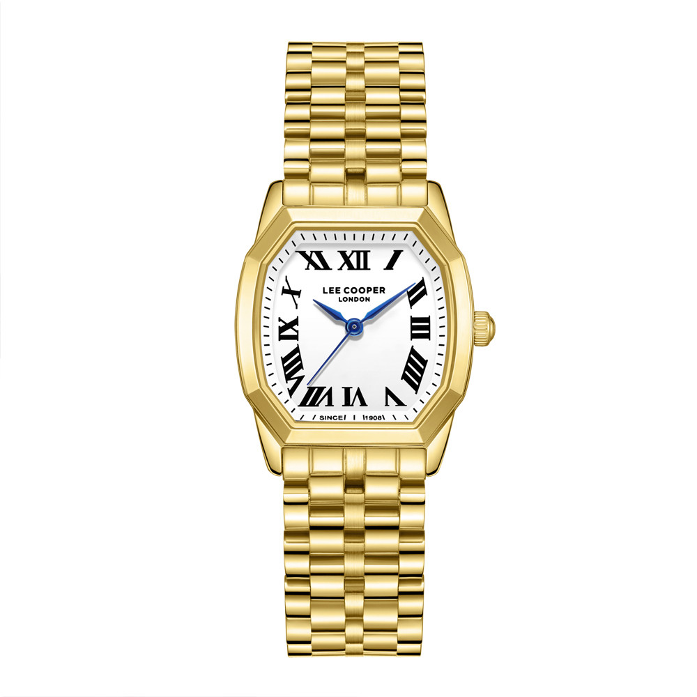 Дамски часовник Lee Cooper с класическа визия от колекцията Elegance. Корпус от супер метал в комбинация с верижка от неръждаема стомана. Моделът е с аналогов дисплей и минерално стъкло. Задвижва се от кварцов механизъм. Водоустойчивост 3 ATM - допускат се леки пръски, не се препоръчва обилно мокрене.