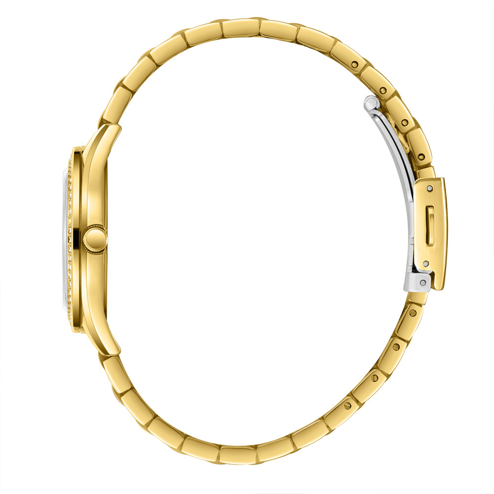 Стилен дамски часовник Lee Cooper от колекцията Elegance. Моделът е с декорация от нежни кристали по безела и дисплея. Корпус изработен от супер метал. Верижка от неръждаема стомана. Диаметър на корпуса 33 мм. Аналогов дисплей в седефен цвят. Стъкло минерал-кристал. Задвижва се от кварцов механизъм. Водоустойчивост 3 ATM - допускат се леки пръски, не се препоръчва обилно мокрене.