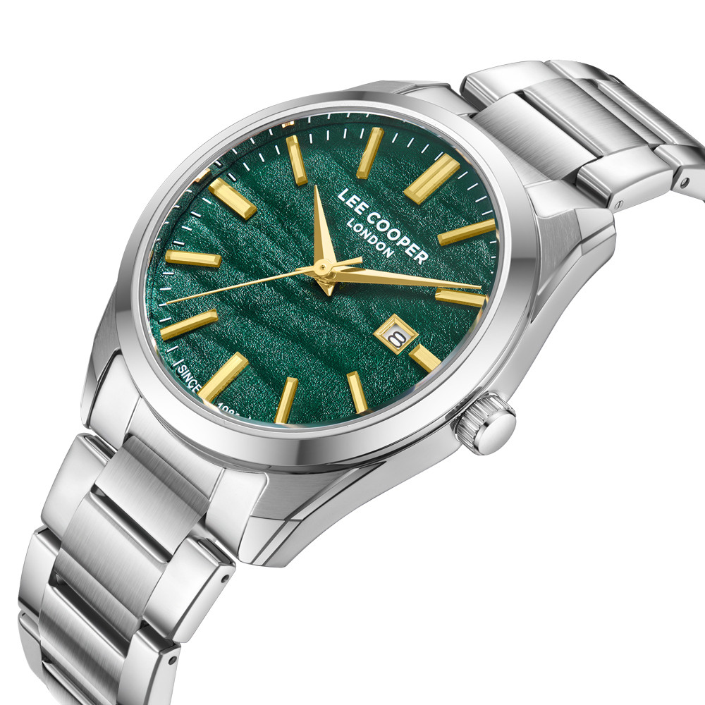 Мъжки часовник Lee Cooper с класическа ежедневна визия. Моделът е с корпус от супер метал и верижка от неръждаема стомана. Дисплеят е аналогов с показател за дата. Диаметър на корпуса 41 мм. Стъкло минерал-кристал. Часовникът се задвижва от кварцов механизъм. Водоустойчивост 5 ATM - допускат се леки пръски и взимане на душ, не се препоръчва обилно мокрене.