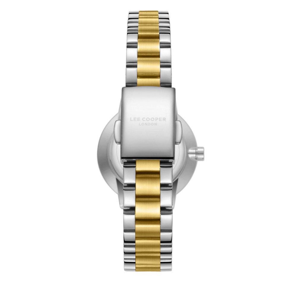 Класически модел дамски часовник Lee Cooper със стилна визия. Корпус изработен от супер метал. Верижка от неръждаема стомана. Аналогов дисплей в красив седефен цвят с декорация от нежни кристали. Стъкло минерал-кристал. Диаметър на корпуса 30 мм. Задвижва се от кварцов механизъм. Водоустойчивост 3 ATM - допускат се леки пръски, не се препоръчва обилно мокрене.