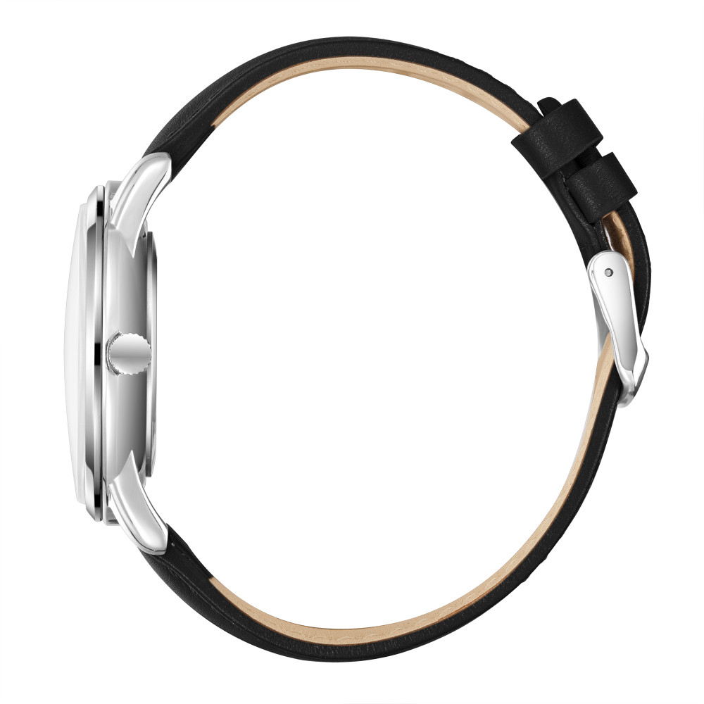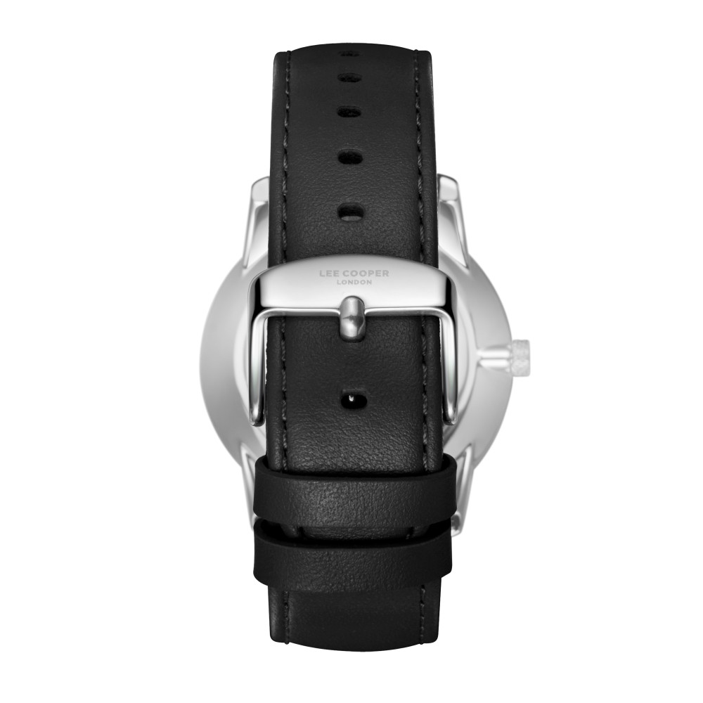 Стилен мъжки часовник Lee Cooper от колекцията Classic. Корпус изработен от супер метал. Черна каишка от естествена кожа. Аналогов дисплей в сребрист цвят с показател за дата и ден от седмицата. Диаметър на корпуса 43 мм. Стъкло минерал-кристал. Часовникът се задвижва от кварцов механизъм. Водоустойчивост 5 ATM - допускат се леки пръски и взимане на душ, не се препоръчва обилно мокрене.