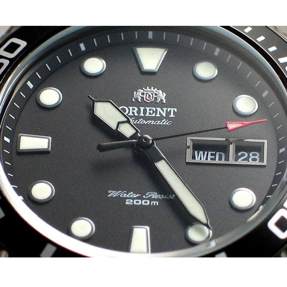 Часовник Orient FAA02003B е спортно-елегантен мъжки модел, съчетаващ здравина, функционалност и класически стил. Черният циферблат с ден и дата предлага отлична видимост, а луминесцентните стрелки и индекси осигуряват удобство в тъмни условия. Корпусът и верижката от благородна стомана гарантират устойчивост при ежедневна употреба. Автоматичният механизъм Cal. F69 осигурява надеждна работа, докато водоустойчивостта 20 ATM позволява плуване, къпане и гмуркане без притеснение.