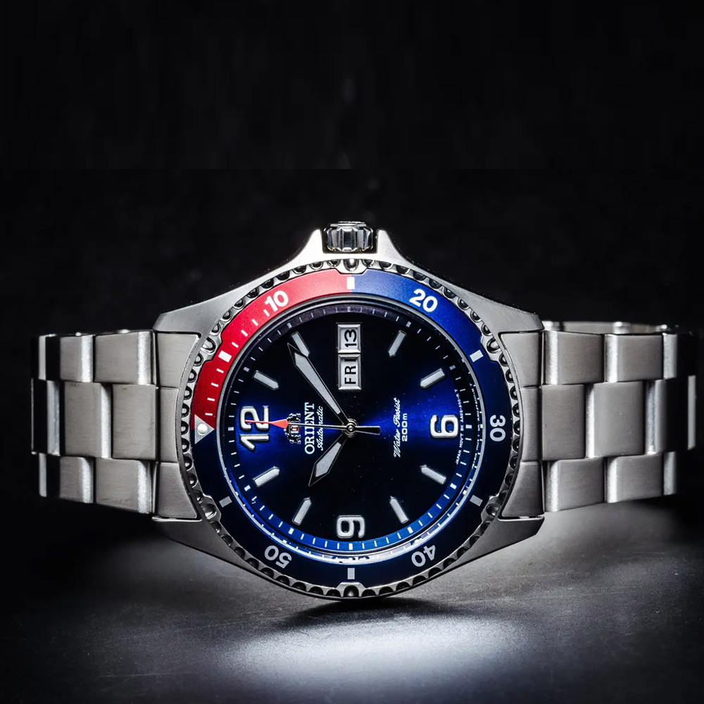 Часовник Orient FAA02009D е спортно-елегантен мъжки модел от колекцията Sports, създаден за активен стил и динамично ежедневие. Тъмносиният циферблат с ден и дата осигурява отлична видимост, допълнена от луминесцентни стрелки и индекси. Корпусът и верижката от благородна стомана гарантират здравина и устойчивост. Автоматичният механизъм Cal. F69 предлага надеждна работа, а водоустойчивостта 20 ATM прави модела подходящ за плуване, къпане и гмуркане в басейни.