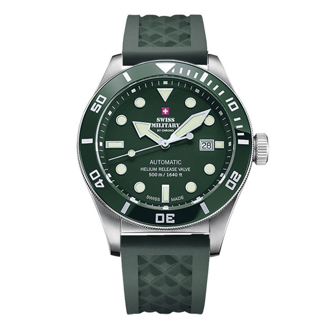 Часовник Swiss Military By Chrono SMA34075.03SET GREEN е част от специален мъжки сет, включващ швейцарски автоматичен часовник и допълнителна зелена силиконова каишка. Моделът впечатлява с елегантен зелен циферблат, корпус и верижка от благородна стомана и изключителна изработка по швейцарски стандарти. Сапфиреното стъкло осигурява отлична защита от надрасквания, а водоустойчивостта до 10 ATM гарантира издръжливост и надеждност при активен начин на живот. Перфектен баланс между стил, функционалност и швейцарска точност.