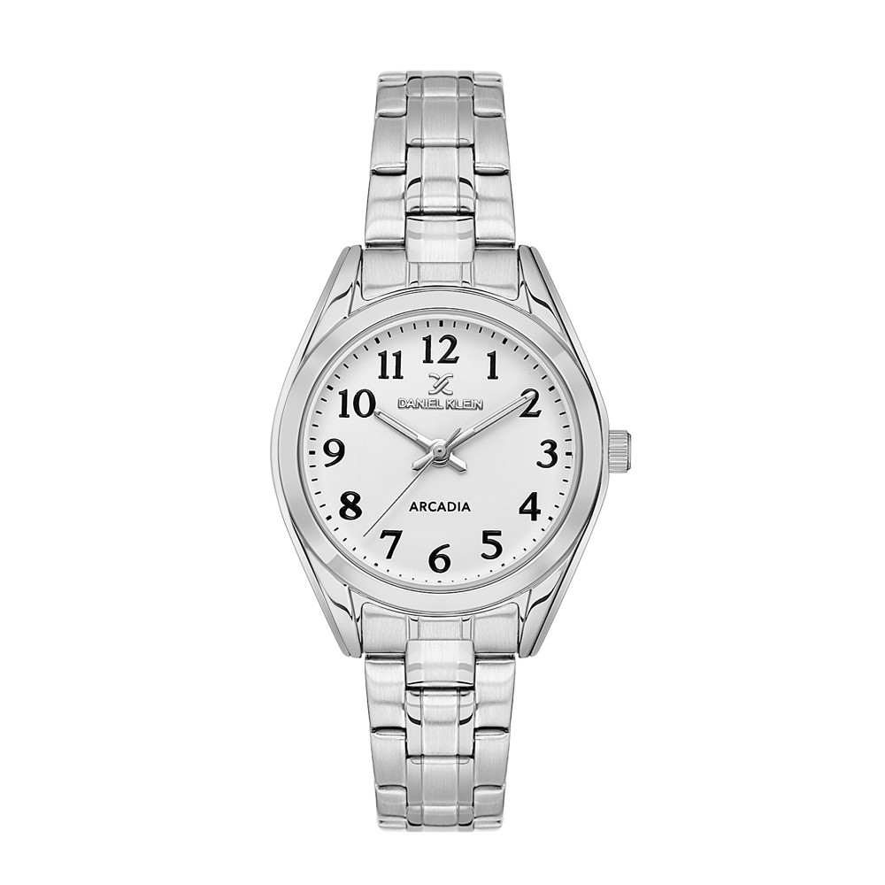 Дамски часовник Daniel Klein с класиески дизайн от колекцията Arcadia. Моделът е с аналогов дисплей и минерално стъкло. Метален корпус в комбинация с верижка от неръждаема стомана. Задвижва се от кварцов механизъм. Водоустойчивост 3 ATM - допускат се леки пръски, не се препоръчва обилно мокрене.