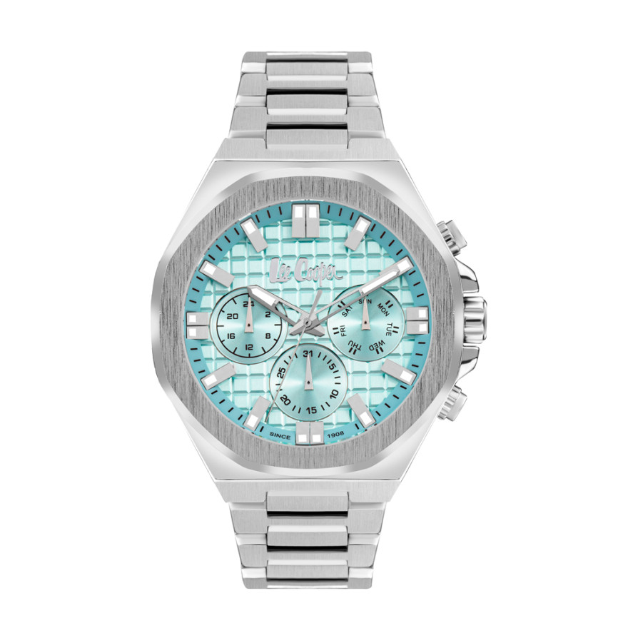 Спортно-елегантен мъжки часовник Lee Cooper с мултифункционален дисплей. Стъкло минерал-кристал. Корпус изработен от супер метал в комбинация с метална верижка. Кварцов механизъм. Водоустойчивост 5 ATM - допускат се леки пръски и взимане на душ, не се препоръчва обилно мокрене.