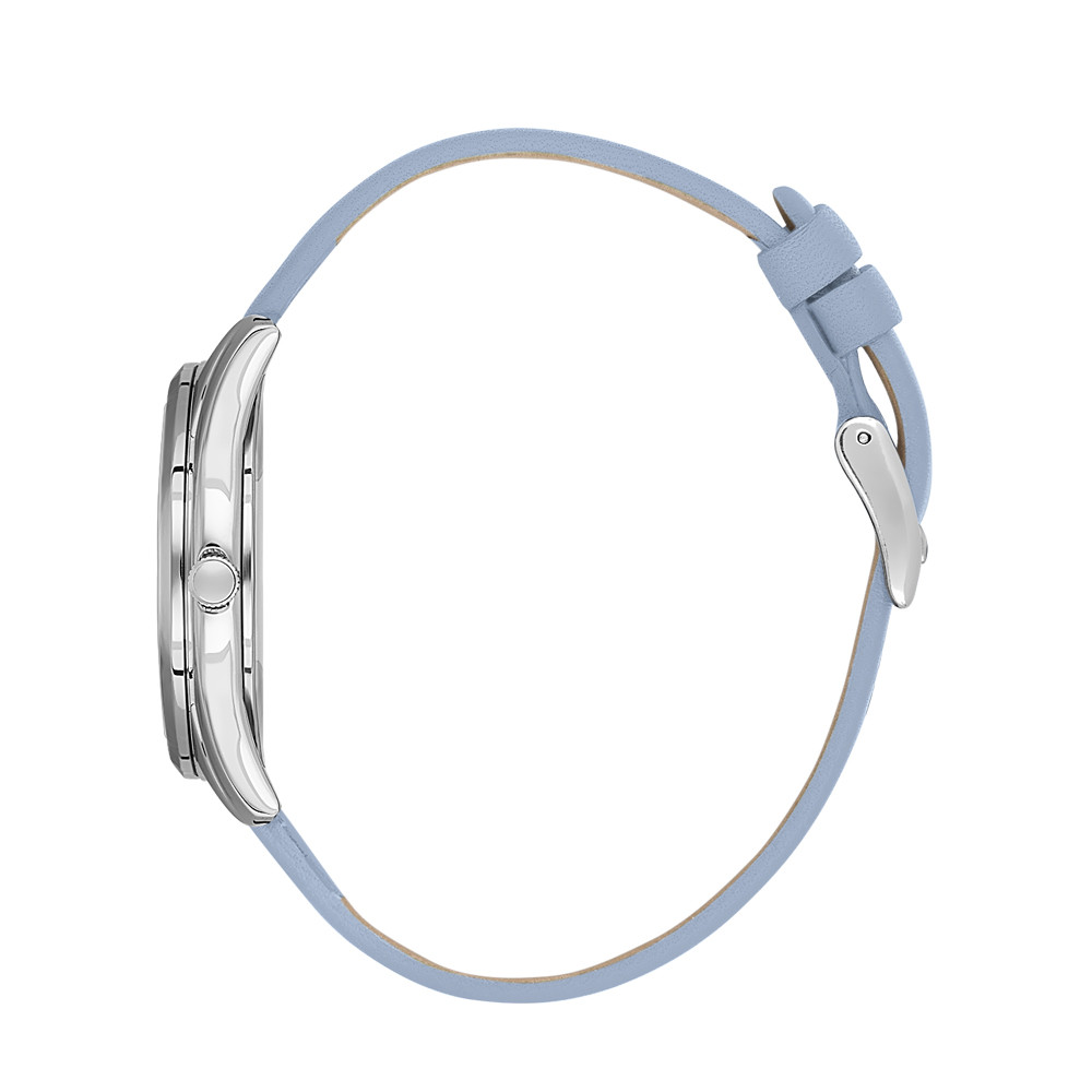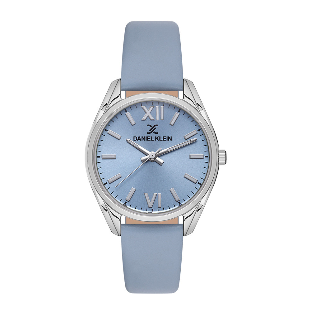 Дамски часовник Daniel Klein с метален корпус и каишка от естествена кожа. Моделът е с аналогов дисплей и стъкло минерал-кристал. Задвижва се от карцов механизъм. Водоустойчивост 3 ATM - допускат се леки пръски, не се препоръчва обилно мокрене.
