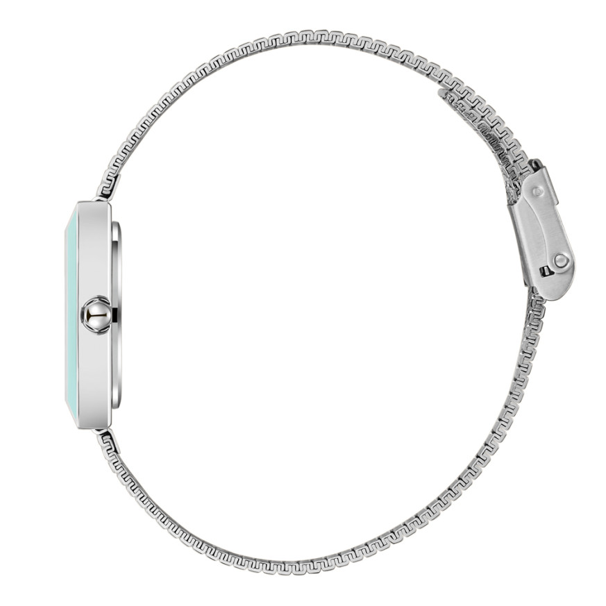 Стилен дамски часовник Lee Cooper с корпус от супер метал и верижка от неръждаема стомана. Син аналогов дисплей със сребристи стрелки и индекси. Стъкло минерал-кристал. Задвижва се от кварцов механизъм. Водоустойчивост 3 ATM - допускат се леки пръски, не се препоръчва обилно мокрене.