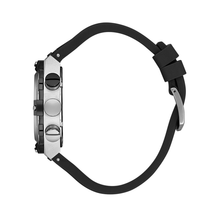 Спортен модел мъжки часовник с мултифункционален дисплей от колекцията Prive. Корпус от стомана в комбинация със силиконова каишка. Минерално стъкло, устойчиво на надраскване. Задвижва се от кварцов механизъм. Водоустойчивост 5 ATM - допускат се леки пръски и взимане на душ, не се препоръчва обилно мокрене.