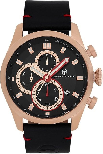 Мъжки часовник Sergio Tacchini  със спортно-елегантен дизайн от колекцията Archivio Chronograph. Моделът е с дисплей хронограф (точност 1/10 от секундата и максимално измервано време 60 минути). Фосфоресцентно покритие на стрелките и индексите. Минерално стъкло, устойчиво на надраскване. Корпус от неръждаема стомана, съчетан с каишка от естествена кожа. Прецизен кварцов механизъм VD57 SEIKO HATTORI произведен в Япония. Водоустойчивост 5 ATM - допускат се леки пръски и взимане на душ, не се препоръчва обилно мокрене.