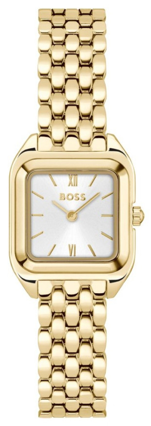Часовник HUGO BOSS 1502823 – дамски кварцов модел с елегантен силует и луксозно излъчване. Корпусът и верижката от неръждаема стомана с жълто PVD покритие придават модерен и изискан вид. Светлият циферблат със златисти стрелки и индекси осигурява яснота и минималистична визия. Кварцовият механизъм гарантира точност, а минералното стъкло и водоустойчивостта до 3 ATM осигуряват надеждност при ежедневна употреба. HUGO BOSS 1502823 е стилен аксесоар за жената, която търси изчистен дизайн, компактен размер и съвременна елегантност.
