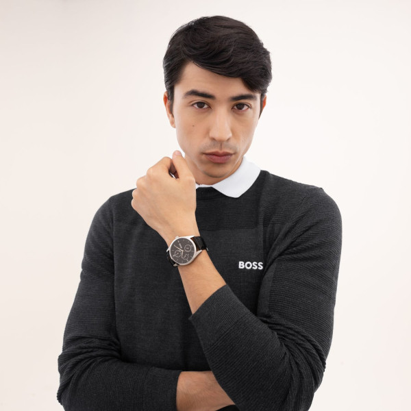 Часовник HUGO BOSS 1514272 – мъжки класически модел, който съчетава стил и практичност. Корпусът от неръждаема стомана е комбиниран с кожена каишка за комфорт и елегантна визия. Тъмният циферблат със сребристи стрелки и римски цифри подчертава изтънчения характер на часовника. Допълнителни функции като ден от седмицата, дата и 24-часов индикатор добавят удобство за ежедневието. С водоустойчивост до 5 ATM и надежден кварцов механизъм, HUGO BOSS 1514272 е универсален избор за официални и делови поводи.