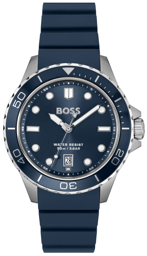 Часовник HUGO BOSS 1514292 – мъжки спортен модел със свеж и динамичен характер. Корпусът от неръждаема стомана е с диаметър 41 мм, допълнен от син силиконовa каишка, която осигурява комфорт при носене. Циферблатът е в син цвят със син безел, луминисцентни стрелки и индекси за отлична четимост, както и индикация за дата. Кварцовият механизъм гарантира надеждност, а водоустойчивостта до 5 ATM прави модела подходящ за активен начин на живот и ежедневна употреба.