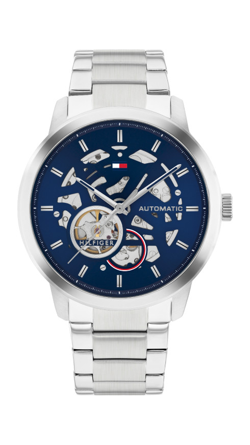 Часовник Tommy Hilfiger 1710661 – Мъжки автоматичен скелетон с тъмносин циферблат и стоманена верижка
