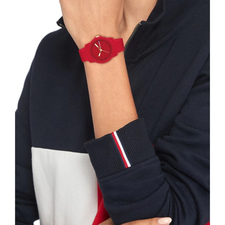 Часовник Tommy Hilfiger 1782689 – Дамски спортен модел с червена силиконова каишка и корпус от полимер