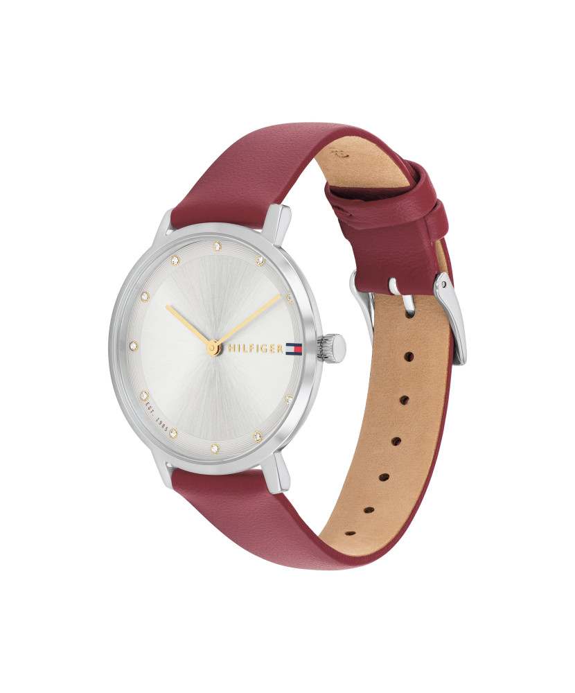Часовник Tommy Hilfiger 1782763 – Дамски елегантен модел със сребрист циферблат и червена кожена каишка