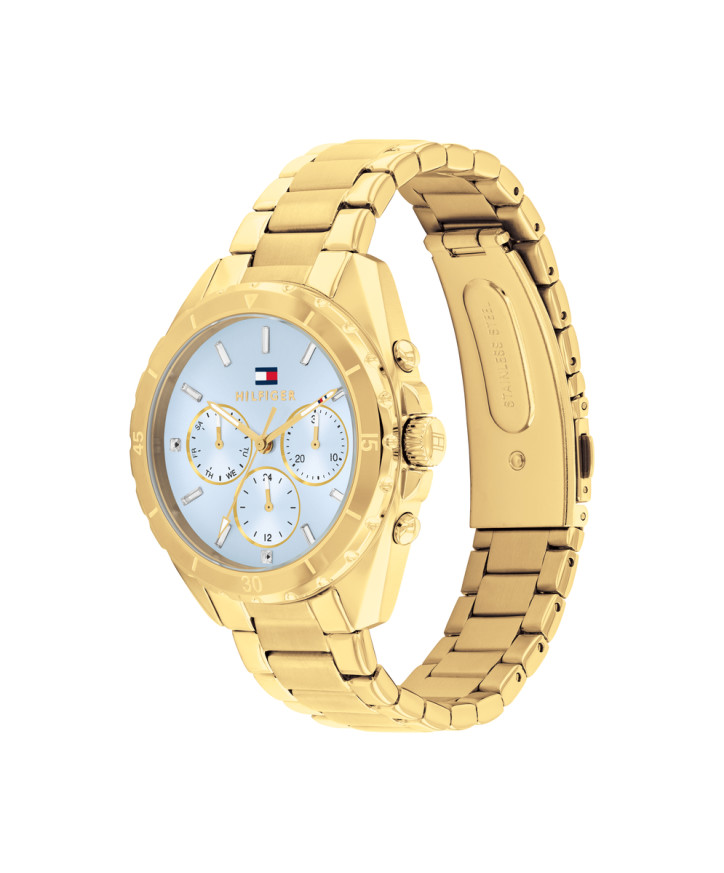 Часовник Tommy Hilfiger 1782783 – Дамски спортен модел със син циферблат и жълто PVD покритие