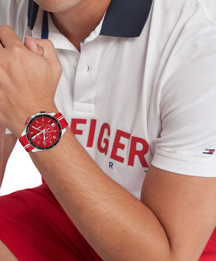 Часовник Tommy Hilfiger 1792170 – Мъжки спортен хронограф с червен циферблат и силиконова каишка