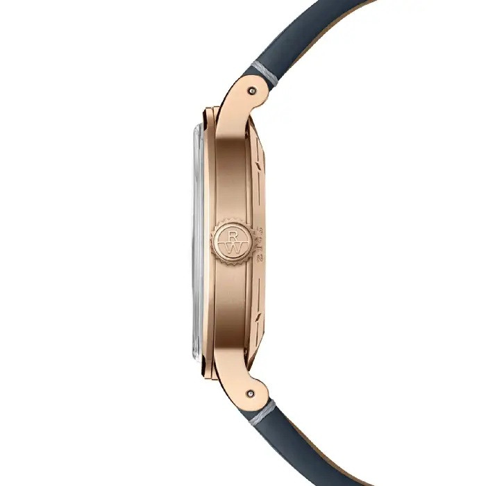 Часовник Raymond Weil Millesime 145-PC5-05650 е изящен символ на женственост и швейцарска прецизност. Корпусът от неръждаема стомана с розово-златно покритие (35 мм) е съчетан със сребърен секторен циферблат с индикация за лунна фаза, арабски цифри и стрелки със Super-LumiNova® покритие. В сърцето му работи автоматичният механизъм RW4280 с 41-часов резерв на енергия, а прозрачният заден капак от сапфир кристал разкрива красотата на движението. Тъмносинята кожена каишка придава елегантен контраст и комфорт, а водоустойчивостта до 5 ATM осигурява спокойствие при ежедневна употреба. Перфектният избор за дамата, която цени класата, детайла и безупречния стил.