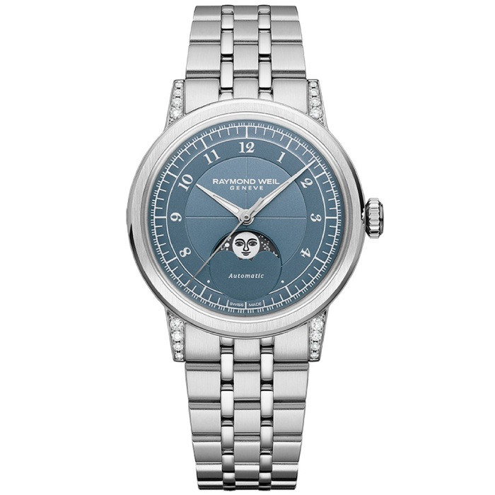 Часовник Raymond Weil Millesime 2145-STS-05511 – Дамски автоматичен модел с лунна фаза, диаманти и син циферблат