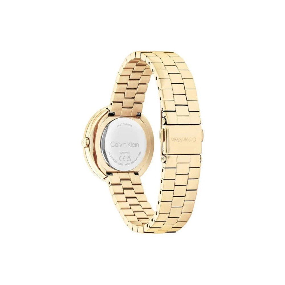 Часовник Calvin Klein 25100094 – Дамски модел със златен циферблат и инкрустация от колекция Twisted