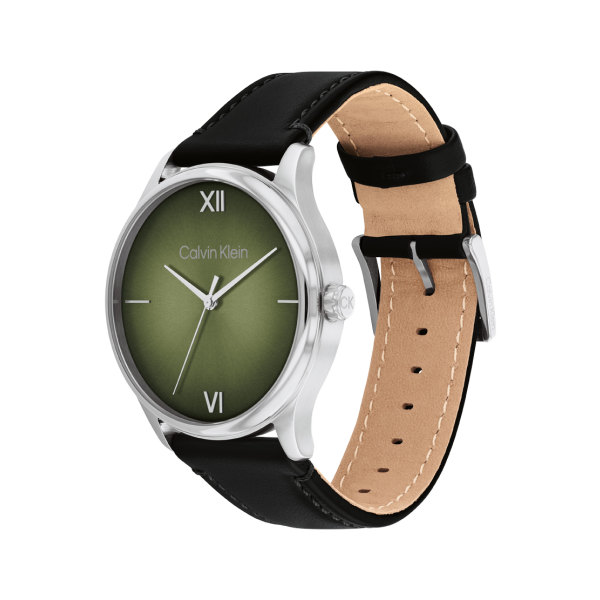 Calvin Klein 25200454 е класически мъжки часовник с изчистен дизайн, съчетаващ елегантност и практичност. Корпусът е изработен от неръждаема стомана, а циферблатът е декориран със сребристи стрелки и индекси за лесна четимост. Кожената каишка осигурява комфорт през целия ден. Подходящ както за делови стил, така и за по-небрежна елегантност.