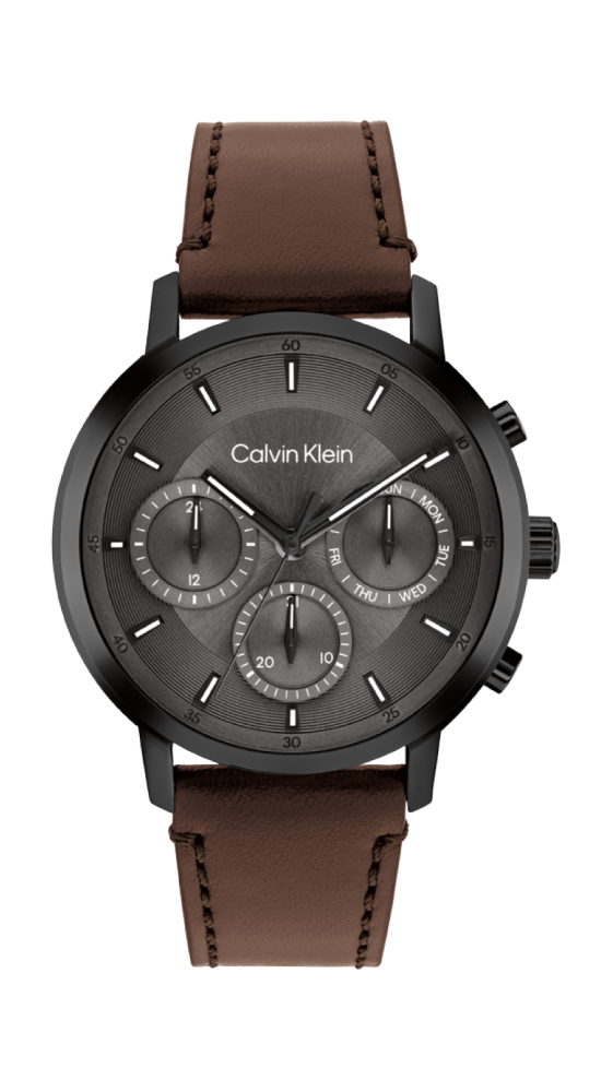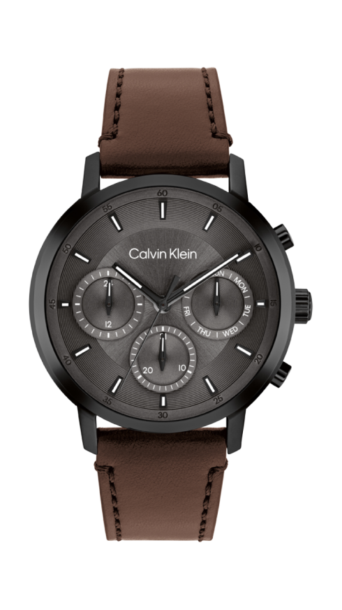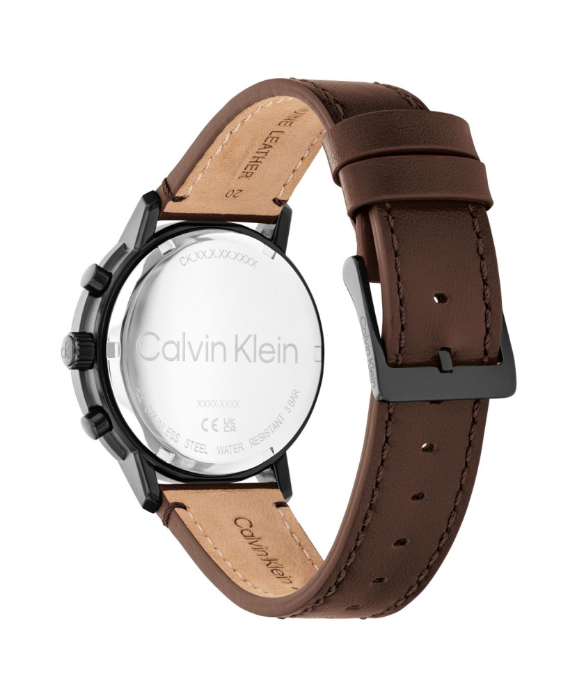 Часовник Calvin Klein 25200498 – елегантен мъжки кварцов модел с корпус от неръждаема стомана с черно PVD покритие и диаметър 41 мм. Черният циферблат е защитен с минерално стъкло, а кафявата кожена каишка с ширина 20 мм подчертава класическия стил. С дебелина на корпуса 10.7 мм, водоустойчивост до 3 ATM и закопчаване с класическа катарама, този часовник е създаден за комфорт и стил в ежедневието.
