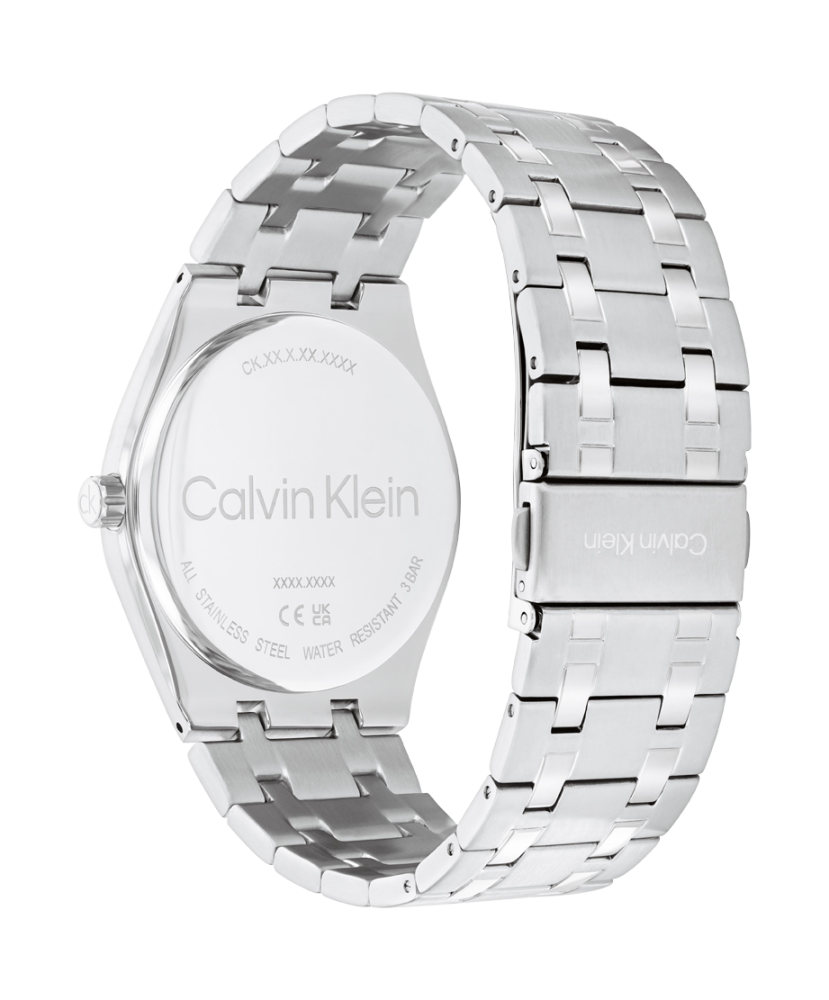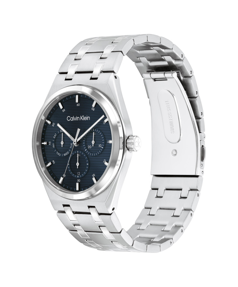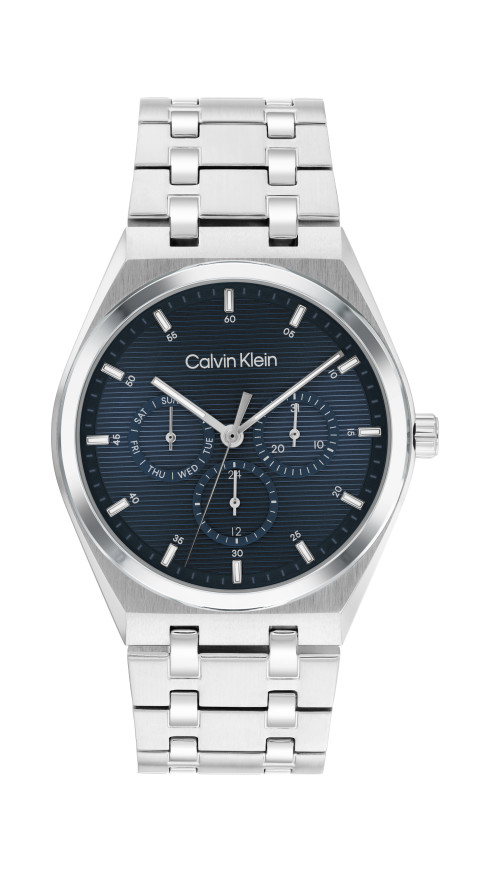Часовник Calvin Klein 25200520 съчетава изчистена естетика, модерна функционалност и характерната минималистична линия на марката. Корпусът от благородна стомана с диаметър 39 mm е допълнен от стоманена верижка, създаваща стилно и универсално излъчване. Синият циферблат с луминисцентни стрелки и индекси предлага отлична четимост, а допълнителните индикации за дата, ден и 24-часов формат осигуряват практичност в ежедневието. Минералното стъкло и водоустойчивостта 3 ATM осигуряват надеждност, а кварцовият механизъм Seiko Instruments Inc. гарантира прецизна работа.