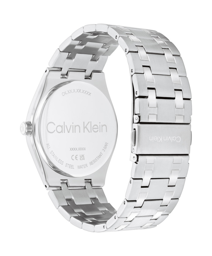 Часовник Calvin Klein 25200521 предлага модерно минималистично излъчване, типично за марката, комбинирано с практичност и елегантност. Корпусът от благородна стомана с диаметър 39 mm е съчетан със стоманена верижка, създавайки изчистена и стилна визия. Зеленият циферблат с луминисцентни стрелки и индекси осигурява отлична четимост и включва показатели за дата, ден и 24-часов формат. Минералното стъкло и водоустойчивостта 3 ATM предлагат ежедневна надеждност, а кварцовият механизъм Seiko Instruments Inc. гарантира висока точност.