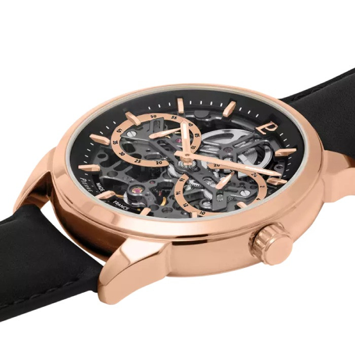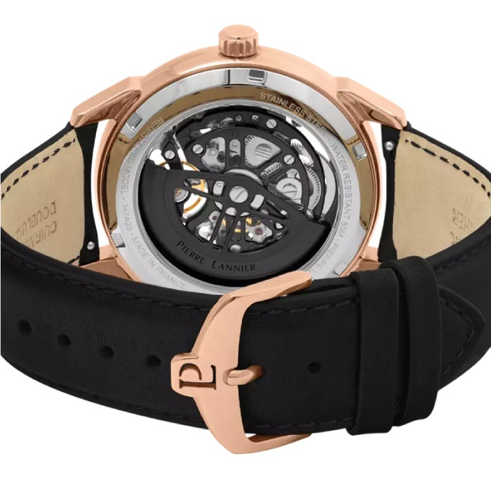 Pierre Lannier 347A233 съчетава френска елегантност и инженерна прецизност. Скелетон циферблатът разкрива автоматичния механизъм с 80-часов резерв на енергия, а корпусът със PVD покритие и кафявата кожена каишка създават модерен и изискан силует. Луминесцентните стрелки и водоустойчивостта до 5 ATM правят този модел практичен избор за всяка ситуация. Проектиран и произведен във Франция, той е създаден за мъже със стил.