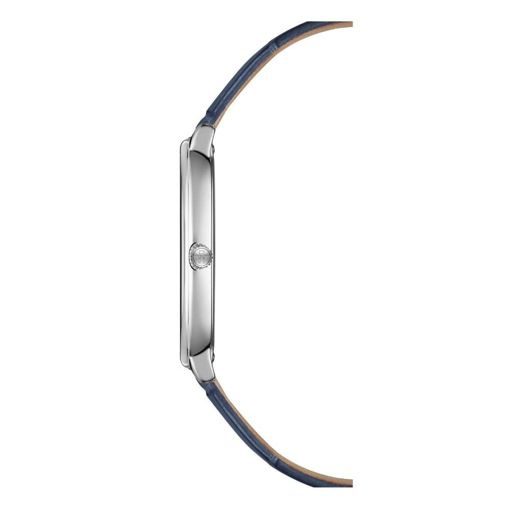 Каишката от естествена телешка кожа в син цвят осигурява комфорт и изискан завършек, а сапфирено стъкло предпазва часовника от надрасквания.