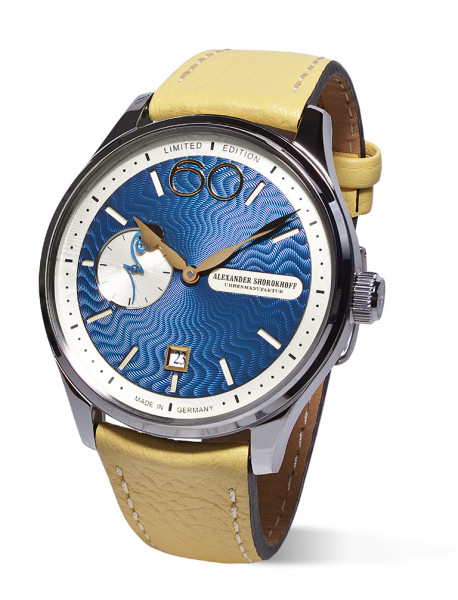 Спокойно и мощно, просто и красиво, емоционално и постигнато: Новият часовник  NEVA от Александър Шорохоф. Вълнообразният гилотиниран  циферблата е вдъхновен от силната и най-богатата на вода европейска река Нева. Малката, извита втора стрелка е оформена като буквата „N“ и по този начин препраща  към  името на часовника и великолепието на града чрез извитата му форма.