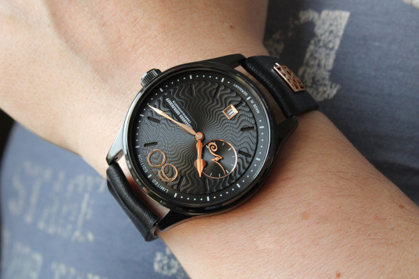 Моделът от розово злато е представен на каишка от кафява кожа от алигатор, докато черният вариант с IP покритие показва своята артистична страна с черна кожена каишка от телешка кожа и арт лого от розово злато.