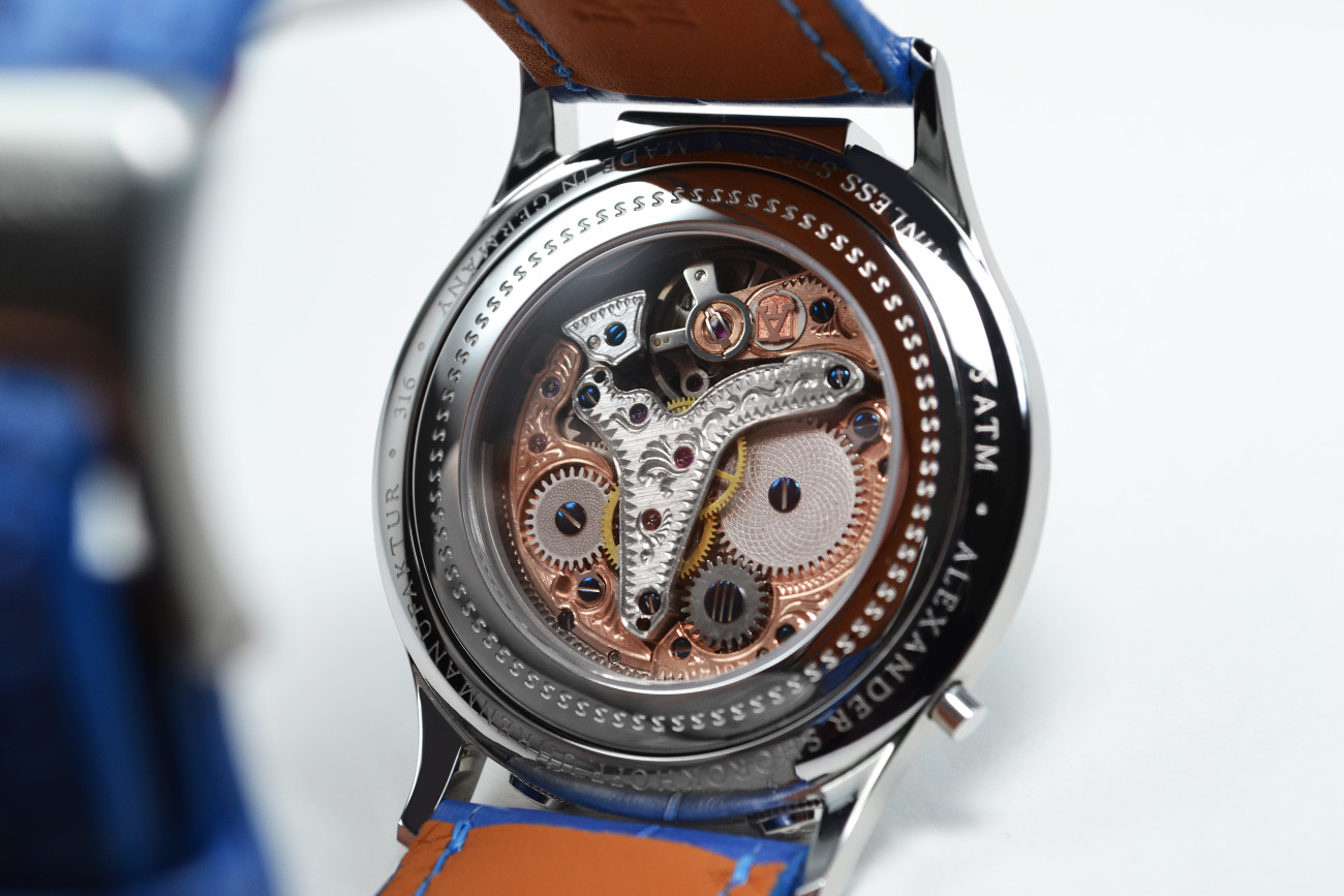 Гравьорите на мануфактурата за часовници "Александър Шорохов" също са свършили страхотна работа със завършването на механизма.