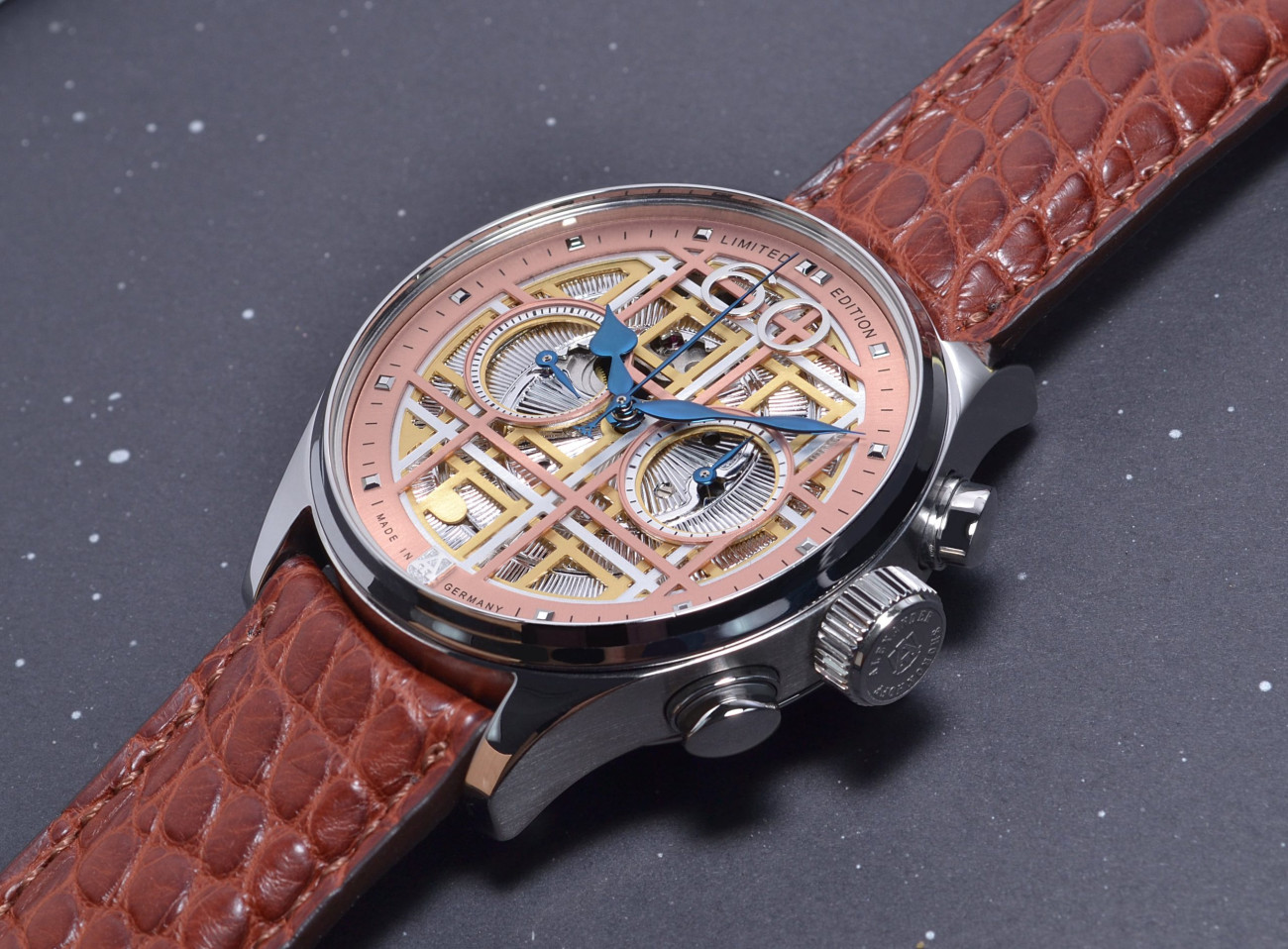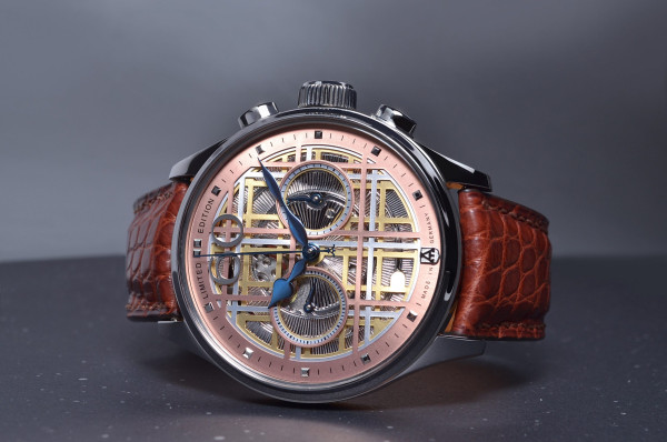Часовник ALEXANDER SHOROKHOFF KARO 3 43.5MM AS.C01-KR01L е изключително лимитиран модел от серията Avantgarde, отличаващ се с артистичен дух и майсторска изработка. С ръчно навиваем хронографски механизъм 3133.AS и енергиен резерв до 42 часа, този модел съчетава висока механична стойност с уникален дизайн. Guilloché циферблатът с розова позлата придава лукс и дълбочина, а масивната каса и кожената крокодилска каишка добавят престиж и мъжествен стил. Моделът е перфектен избор за колекционери и ценители на ръчната изработка.