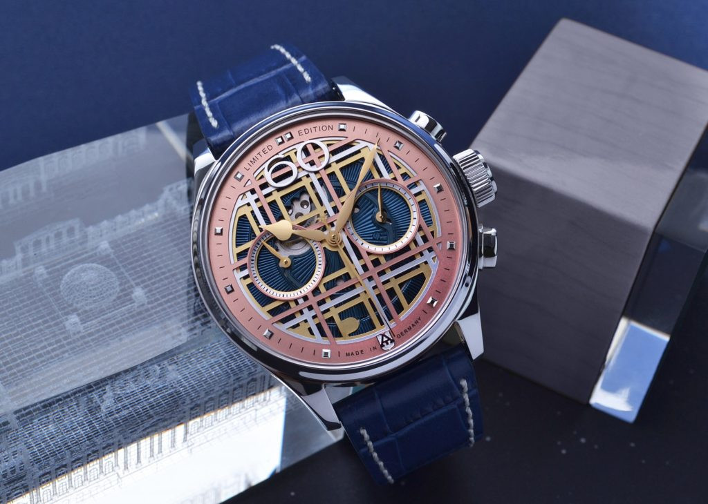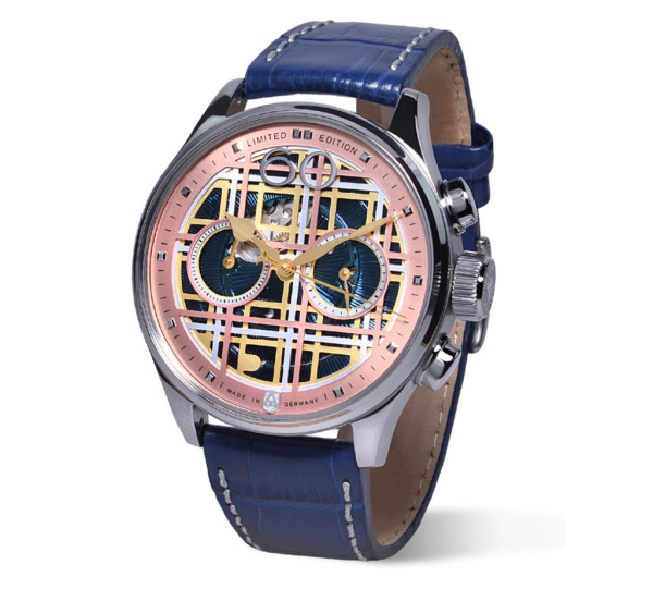 Часовник ALEXANDER SHOROKHOFF KARO 3 43.5MM AS.C01-KR02 е лимитиран шедьовър от колекцията Avantgarde, който съчетава артистичност, прецизност и изразителен дизайн. С ръчно навиван механизъм 3133.AS и хронографска функция, този модел впечатлява с гилоширан циферблат в розова позлата и смела синя крокодилска каишка. Той е създаден за мъже, които търсят изкуство в движението и лимитирана уникалност – само 29 броя в света. Всеки детайл подчертава индивидуалността и ръчната майсторска изработка.