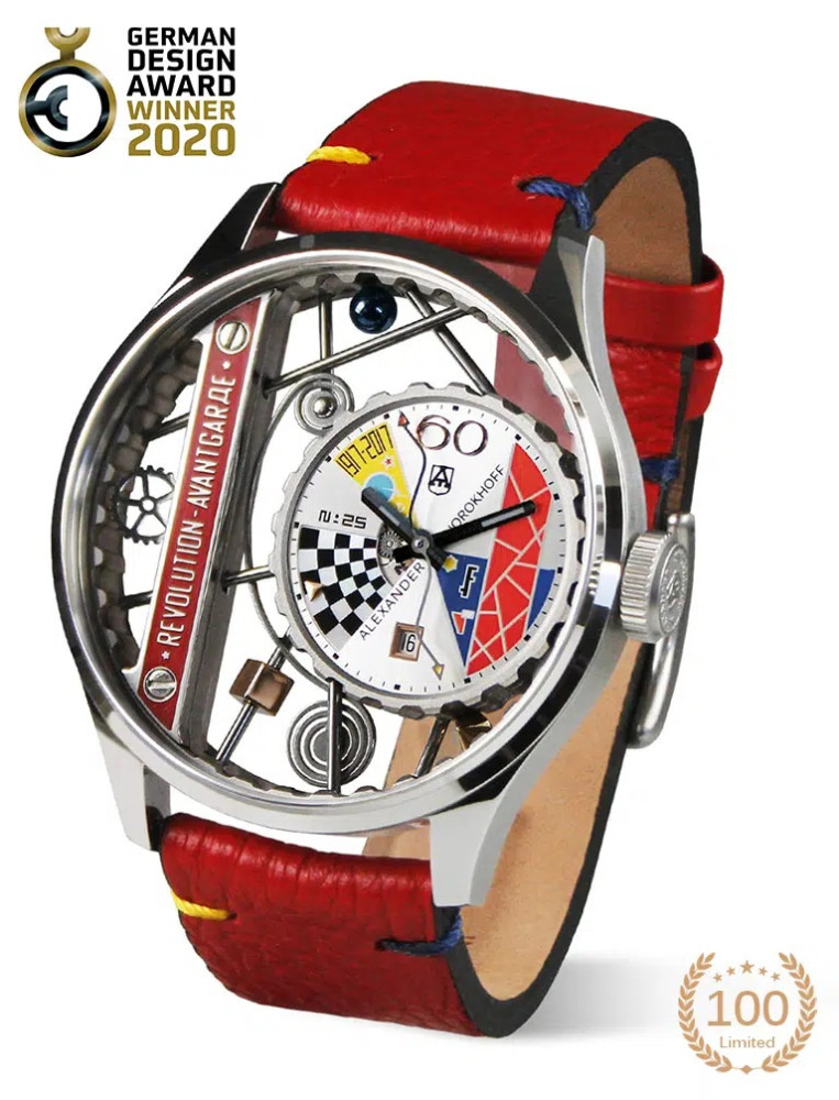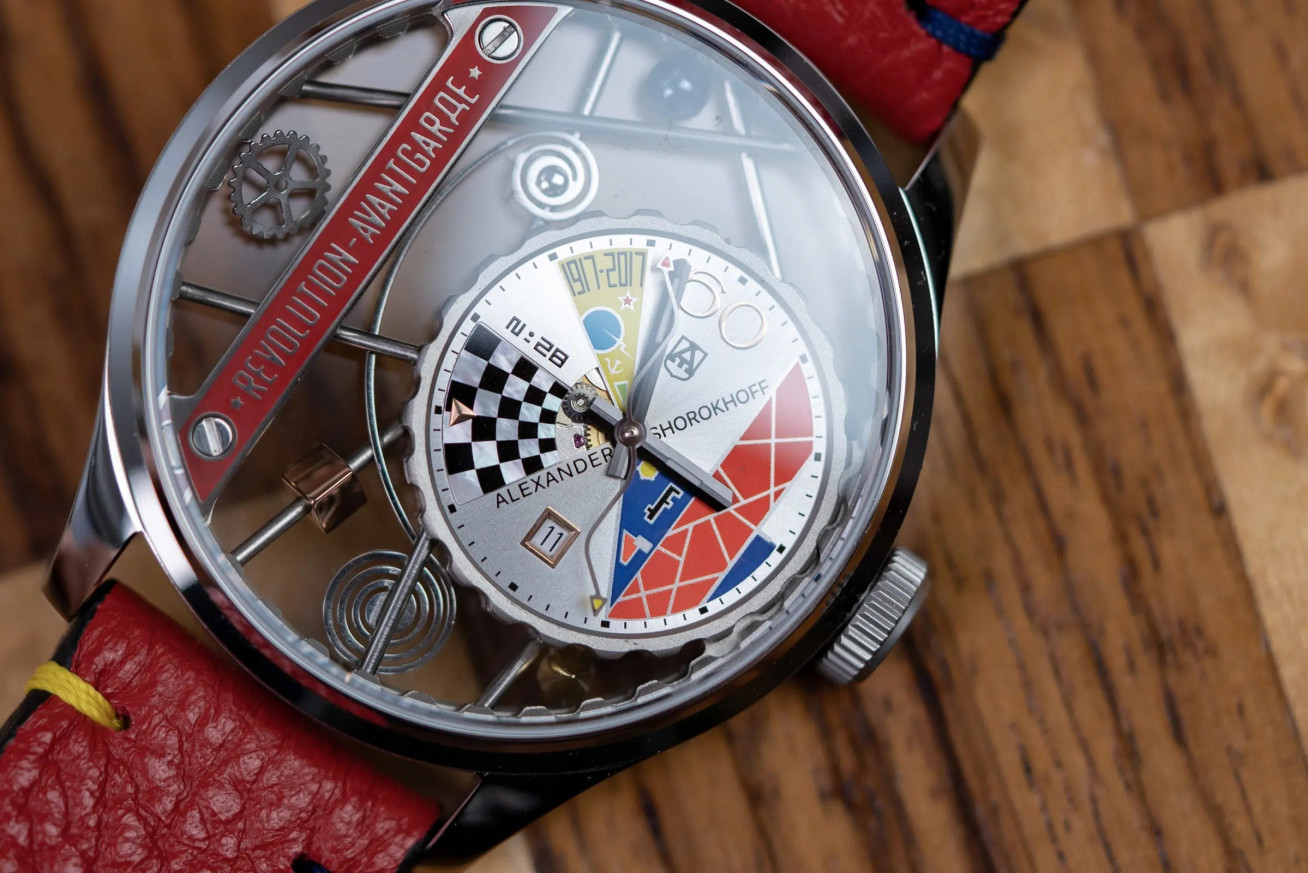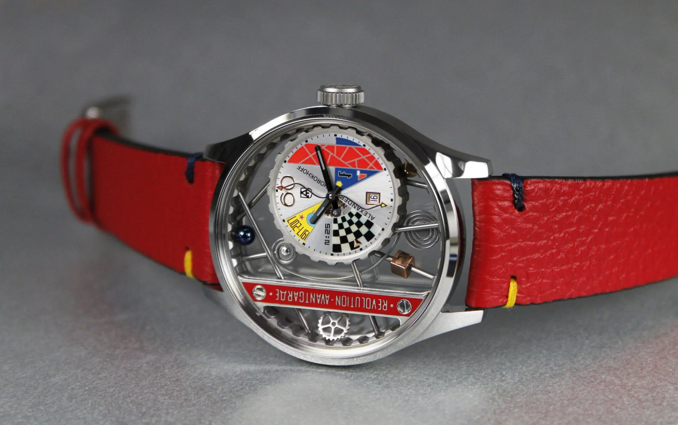 С часовникът ''REVOLUTION'' Александър Шорохов реализира таланта си на инженер като показва повече изкуство и повече ''Авангард'' в своя дизайн. В корпус с диаметър 43.5 той създава пространство за механизъм, циферблат и авангардно изкуство. Свободното пространство е допълнено с геометрични елементи като квадрат, пирамида и сфера, както и с малки движещи се части като пружини и колела. Тези части буквално плават в свободното пространство на касата, която изглежда пробита от метални части. Малък мост с емайлирано покритие свързва часовника с останалото пространство, което иначе остава свободно и прозрачно. Вътрешната част на касата и външният ръб на малкия циферблат са подобни на технически колела. Целта е да се създаде усещане за индустриализация и промяна в живота на хората. Голямата индустрия и финият механизъм се свързват перфектно и оставят място за размисъл, обмисляне и философстване.
