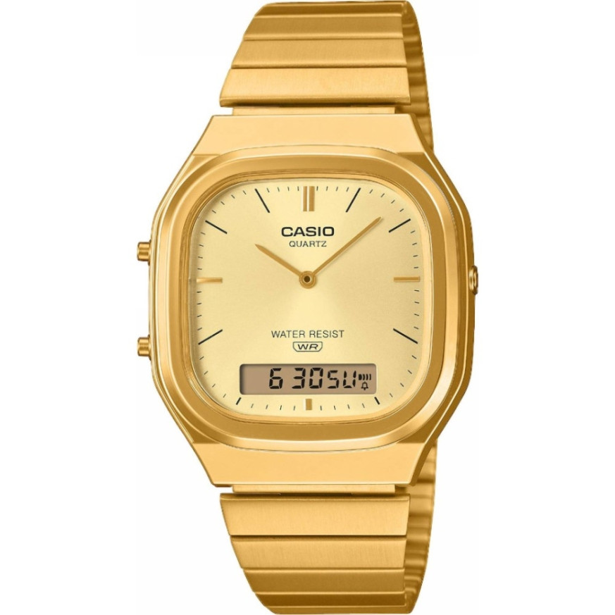 Часовник Casio AQ-240EG-9AEF – Мъжки аналогово-дигитален модел от серия Vintage Edgy със стоманена верижка с йонно покритие