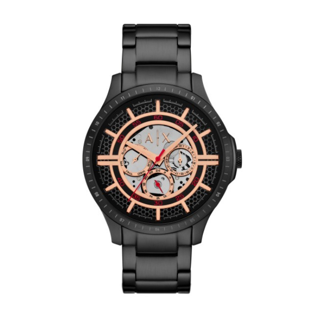 Мъжки Часовник Armani Exchange AX2465   Armani Exchange AX2465 от колекция Hampton e мъжки кварцов часовник с черен кръгъл циферблат, черен корпус от неръждаема стомана с диаметър 46 mm и черна верижка 22 mm, изработена от неръждаема стомана.