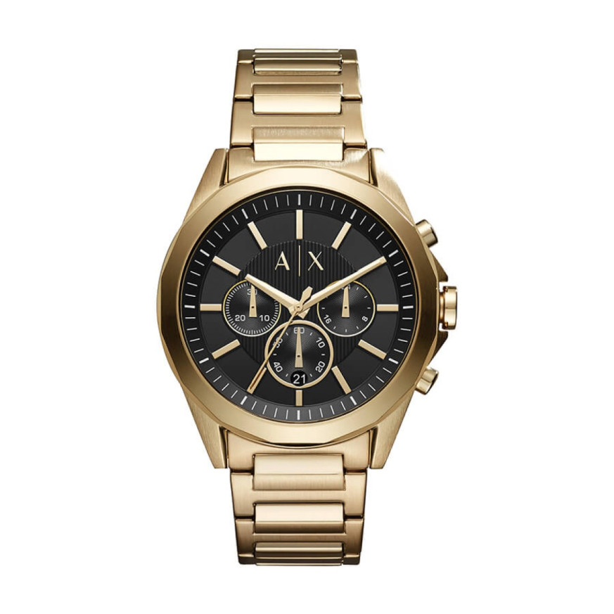 Часовник Armani Exchange AX2611 е елегантен мъжки модел от колекция Drexler с черен циферблат и златиста верижка от благородна стомана. Кварцовият механизъм, корпусът с диаметър 44 мм и водоустойчивостта 5 ATM го правят стилен избор за мъже с усет към класата и увереността.
