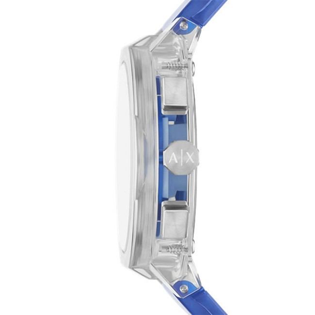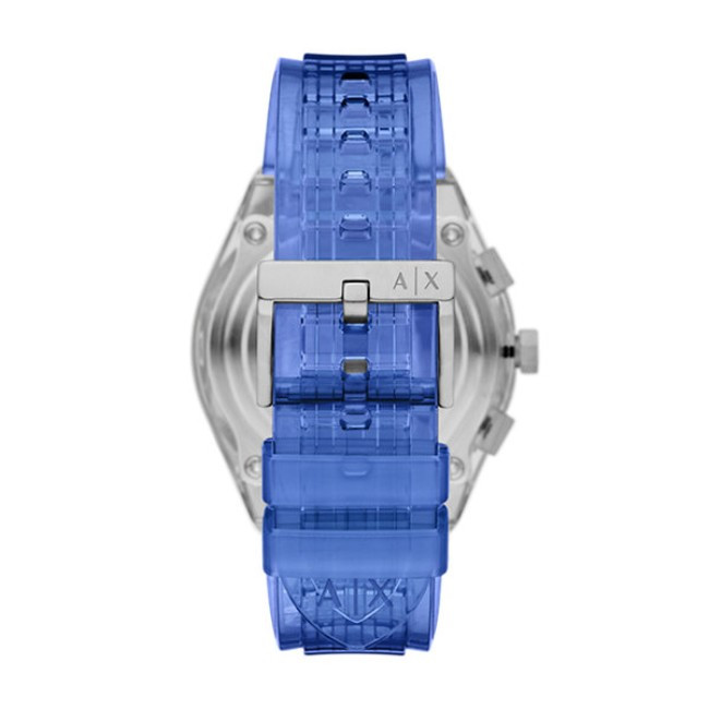 Мъжки Часовник Armani Exchange AX4166   Armani Exchange AX4166 от колекция Sync e мъжки кварцов часовник със син кръгъл циферблат, корпус от полимер с диаметър 44 mm и синя каишка 16 mm, изработена от полиуретан.