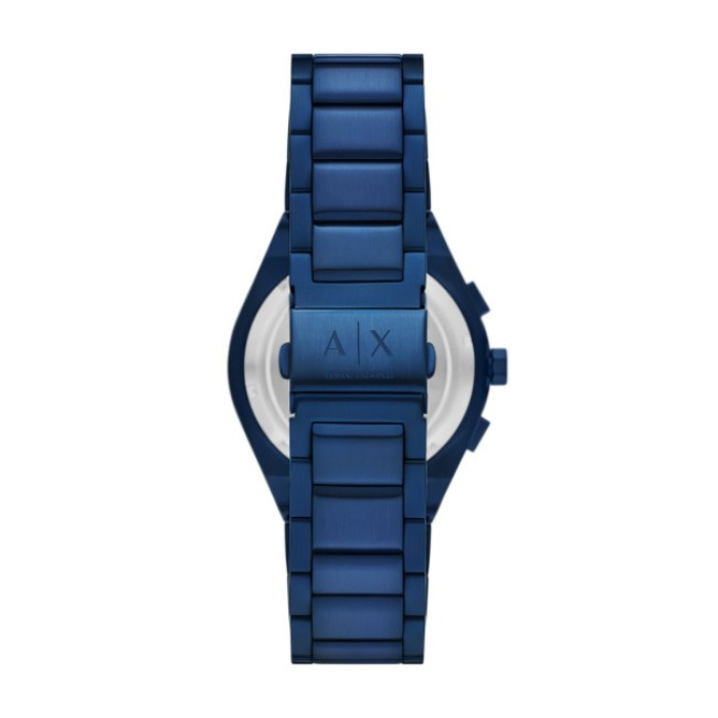 Мъжки Часовник Armani Exchange AX4189   Armani Exchange AX4189 от колекция Sync e мъжки кварцов часовник със син кръгъл циферблат, черен корпус от неръждаема стомана с диаметър 42 mm и синя верижка 22 mm, изработена от неръждаема стомана.