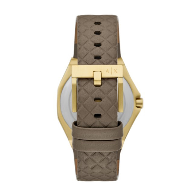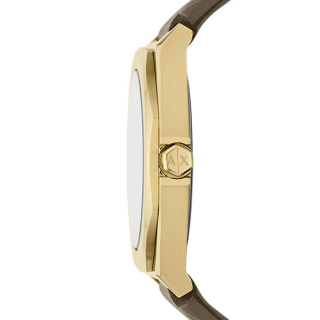 Дамски Часовник Armani Exchange AX4617   Armani Exchange AX4617 от колекция Andrea e дамски кварцов часовник със златист друга циферблат, златист корпус от неръждаема стомана с диаметър 34 mm и кафява каишка 14 mm, изработена от естествена кожа.