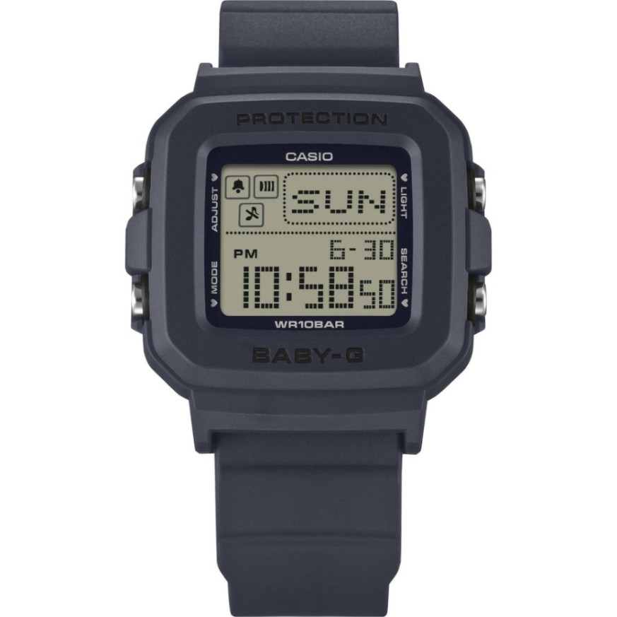 Casio Baby-G BGD-10KH-2BER съчетава спортна визия, функционалност и изключителна издръжливост, характерна за серията Baby-G. Лек корпус и каишка от полимер осигуряват комфорт при активно носене, а удароустойчивата конструкция предпазва часовника при вибрации и удари. Моделът предлага 5 ежедневни аларми, хронометър, таймер и автоматичен календар, както и световно време за удобство при пътуване. Неоновото LED осветление подчертава детайлите на дисплея, улеснявайки разчитането в тъмни условия. С водоустойчивост до 100 метра и модерен син дизайн BGD-10KH-2BER е идеален избор за динамични жени с активен стил.