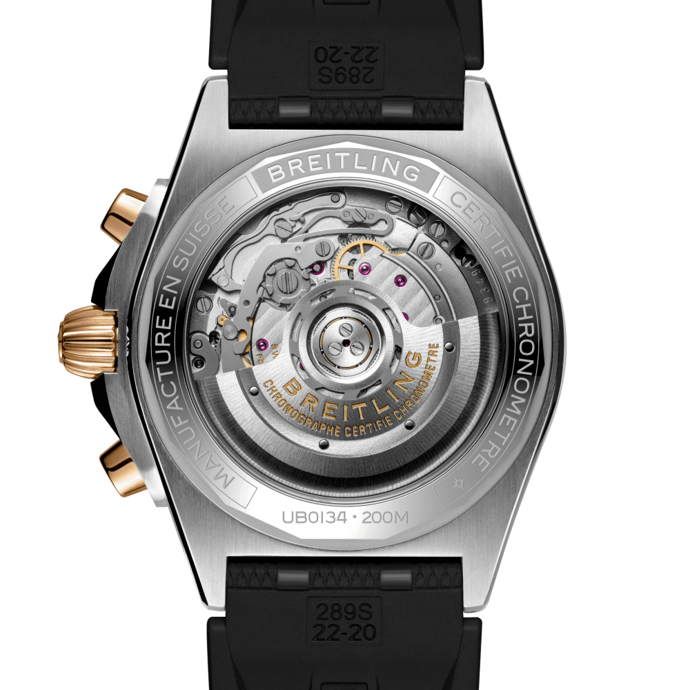 Часовник Breitling Chronomat B01 42 – UB0134101B1S1 е мъжки автоматичен хронограф със сертификат от COSC, корпус от стомана и 18К розово злато, и антрацит циферблат със Super-LumiNova®. С каишка от каучук и прозрачен гръб, този модел съчетава лукс, спорт и прецизност. Идеален избор за мъже с динамичен стил.