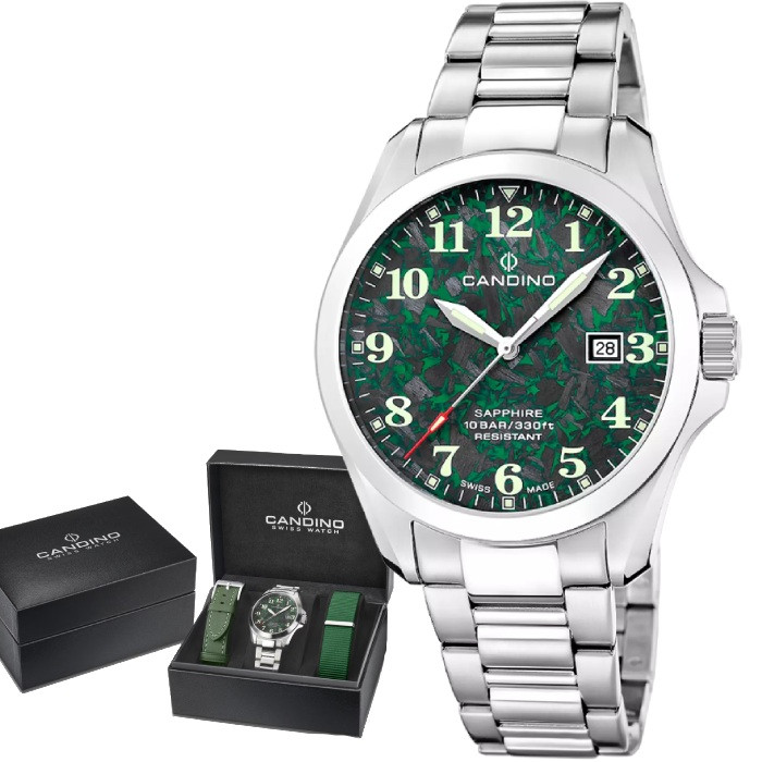 Часовник Candino C4785/3 – Мъжки спортно-елегантен модел със зелен циферблат от колекция Field