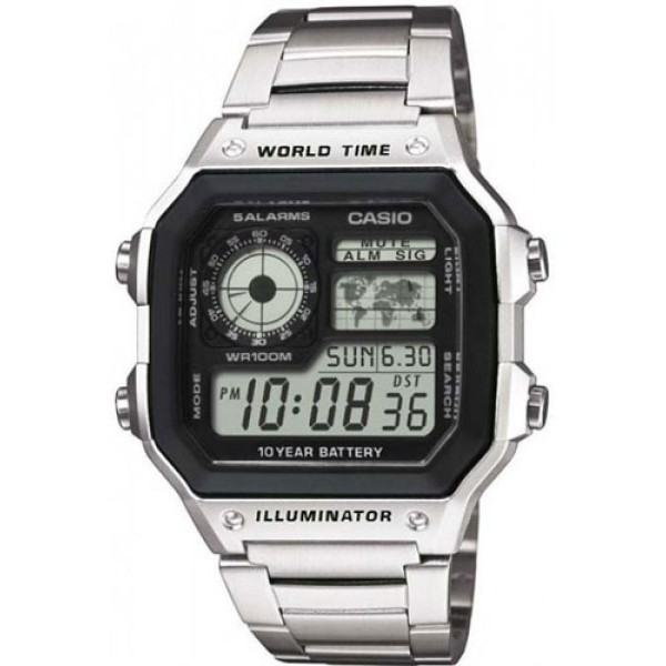 CASIO AE-1200WHD-1AVEF е практичен дигитален часовник, съчетаващ модерен дизайн, дълъг живот на батерията и разнообразие от функции. С вградено световно време, 5 аларми, мултивреме за 4 града и водоустойчивост до 10 ATM, този модел е отличен избор за динамичния ежедневен живот, пътувания и спорт.