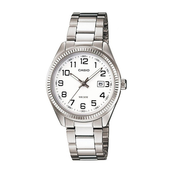 Часовник Casio LTP-1302PD-7BVEG е изчистен дамски модел от колекцията Casio Collection, съчетаващ елегантен стил и надеждност. Белият циферблат с индексни маркери е допълнен с дата на позиция 3 часа за удобство в ежедневието. Корпусът и верижката са изработени от благородна стомана, осигуряваща издръжливост и комфорт при носене. Минералното стъкло предпазва от надрасквания, а водоустойчивостта до 3 ATM го прави подходящ за ежедневна употреба. Лек и фин, този модел е перфектен аксесоар за дамите, които ценят класиката и практичността.