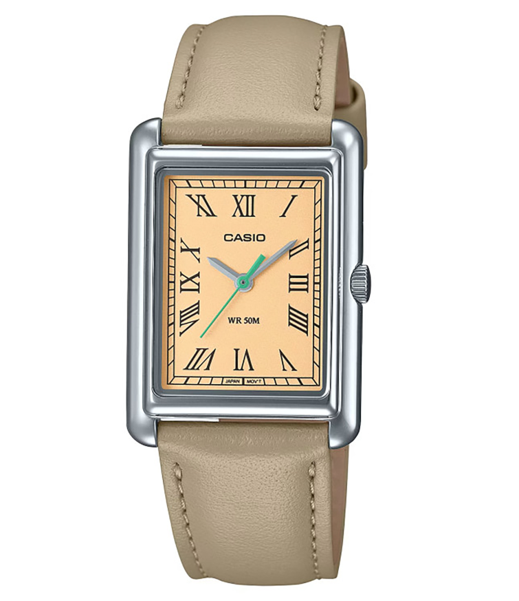 Casio LTP-B165L-5BVEF е стилен дамски часовник, който комбинира семпъл дизайн и комфорт в едно. Моделът се отличава с корпус от неръждаема стомана и кафява каишка от естествена кожа, която осигурява удобство при носене. Циферблатът в топъл кафяв нюанс е защитен с минерално стъкло, устойчиво на надрасквания, а водоустойчивостта до 50 м позволява ежедневна употреба – къпане и миене на ръце без притеснения. Със своята лека конструкция (29 г) и компактни размери, Casio LTP-B165L-5BVEF е отличен избор за жени, които търсят стилен и функционален аксесоар за ежедневието.