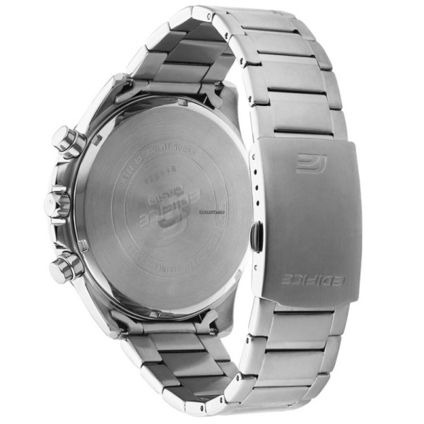 CASIO EFV-620D-2AVUEF е стилен мъжки часовник от серията Edifice, съчетаващ спортна визия и елегантни акценти. Синият циферблат с хронограф и сребристи индекси подчертава прецизността на детайла. Корпусът и верижката са изработени от неръждаема стомана, а масивната закопчалка със защита гарантира сигурност и комфорт. Водоустойчивостта до 100 метра и устойчивото на надраскване минерално стъкло правят този модел подходящ за всеки активен ден.